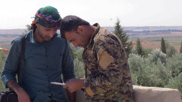 Em rastî li heval Zana hatin ku ew jî cihê xwe di nava QSD’ê de digire û fermandarê tabûrê ye. Zana Kobanê ji gundê Bilikê ye, ku Bilik li başûrî Kobanê ye. Di nava gelê Kobanê de bi navê gundê Şehîdan tê naskirin. Tevî ku gundek e û tenê ji çend malan pêk tê, 40 şehîdên xwe heen. Em li wesayîta Zana siwar bûn û ev jî ji me re bû derfet ku Zana bersivê bide pirsên me. Me nexwest ku em karê wî rawestînin. Zana got: "Her tim hevalên me yên şehîd bûne, di bîr û bala me de ne. Wan dixwest ev gel û ax rizgar bibe, em jî şopdarên wan in."